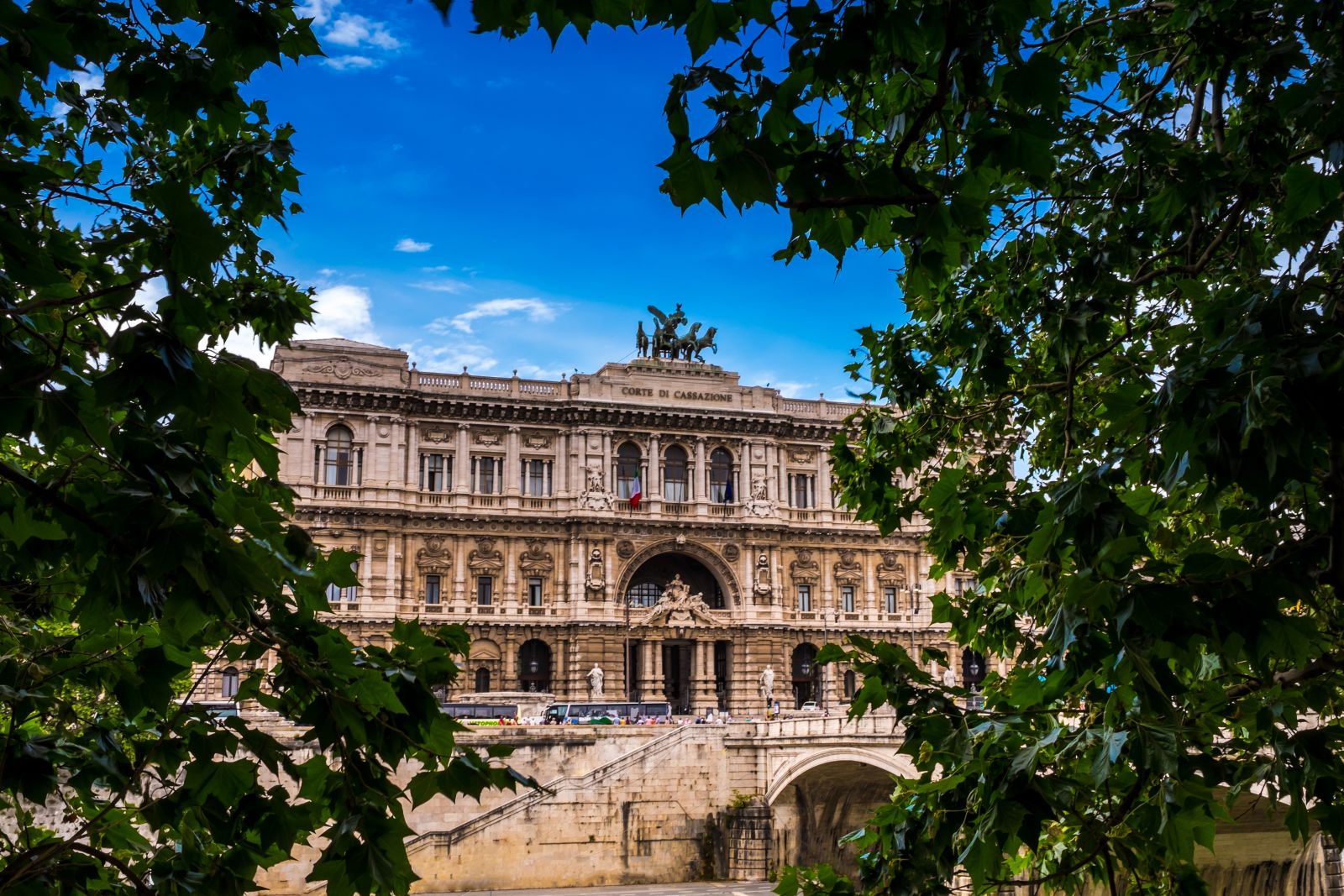 The Palace of Justice, Rome, the seat of the Supreme Court of Cassation and the Judicial Public Library, is located in the Prati district of Rome. It fronts onto the Piazza dei Tribunali, the Via Triboniano, the Piazza Cavour, and the Via Ulpiano. The huge building is popularly called in Italian the Palazzaccio.