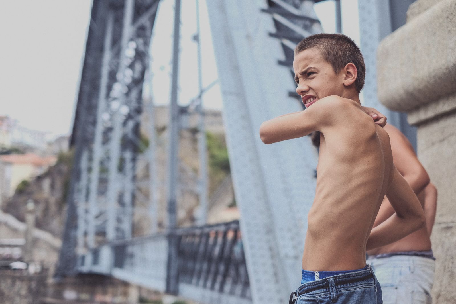 upon arrival, this kid stared at the river for quite some time. Lot's of boats cross beneath the bridge and the current is at sometimes also quite strong. It is also dangerous to jump at low tide so these kids understand tides and know their timetables