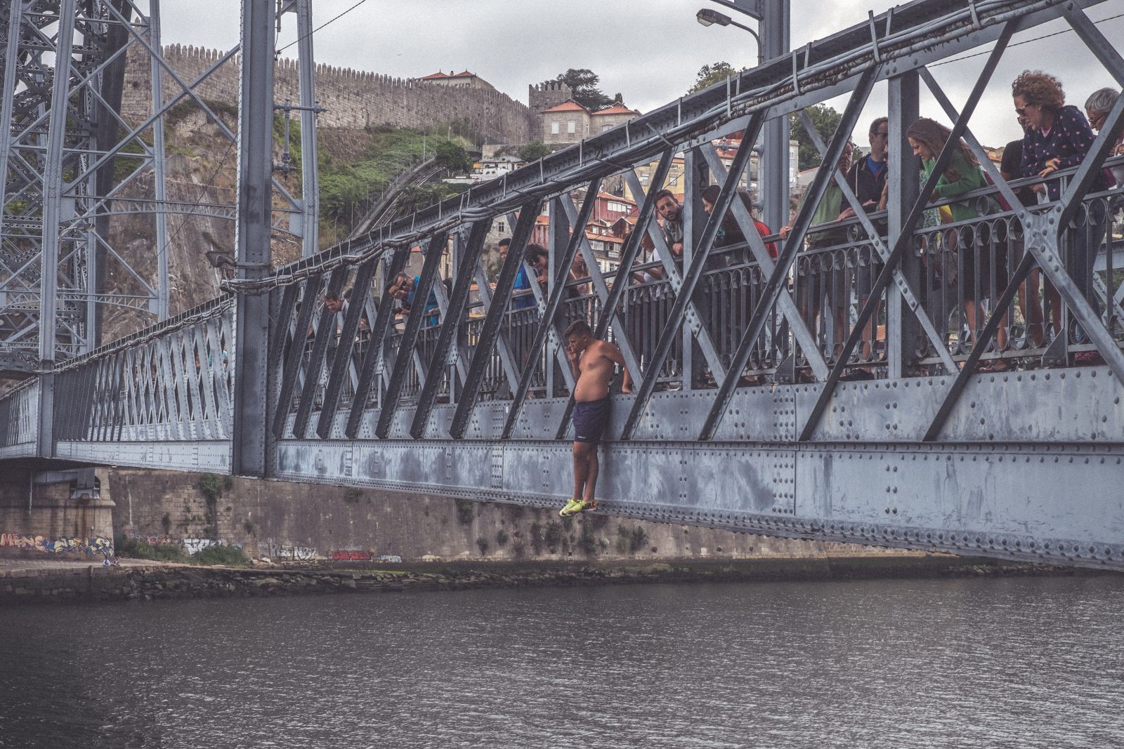 A lot of young people smoke in Portugal. Here you can see one of the 3 friends smoking just before jumping