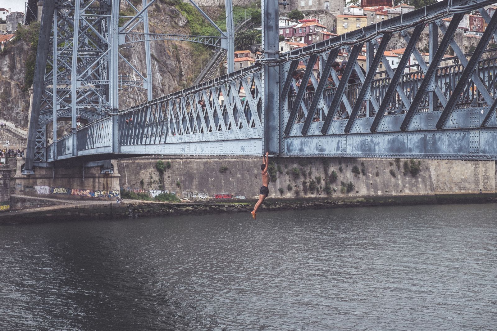 this position has 2 functions for the oldest of the kids. 1st he can now see if any boats are coming and decide when to jump as well as tell his friends it's safe to jump in the next few minutes. 2nd, it's a show off position that impresses tourists and it leads them to tip them more