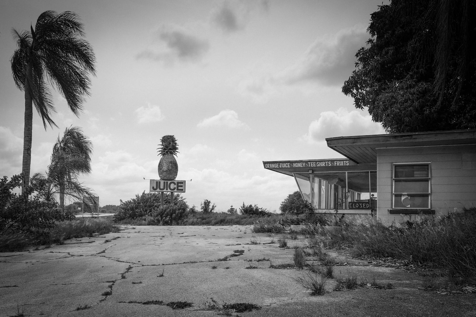 old Florida Juice Stand. It used to have pineapple grove and homemade pineapple jellies, juices and souvenirs. on top of pineapple is an osprey nest.