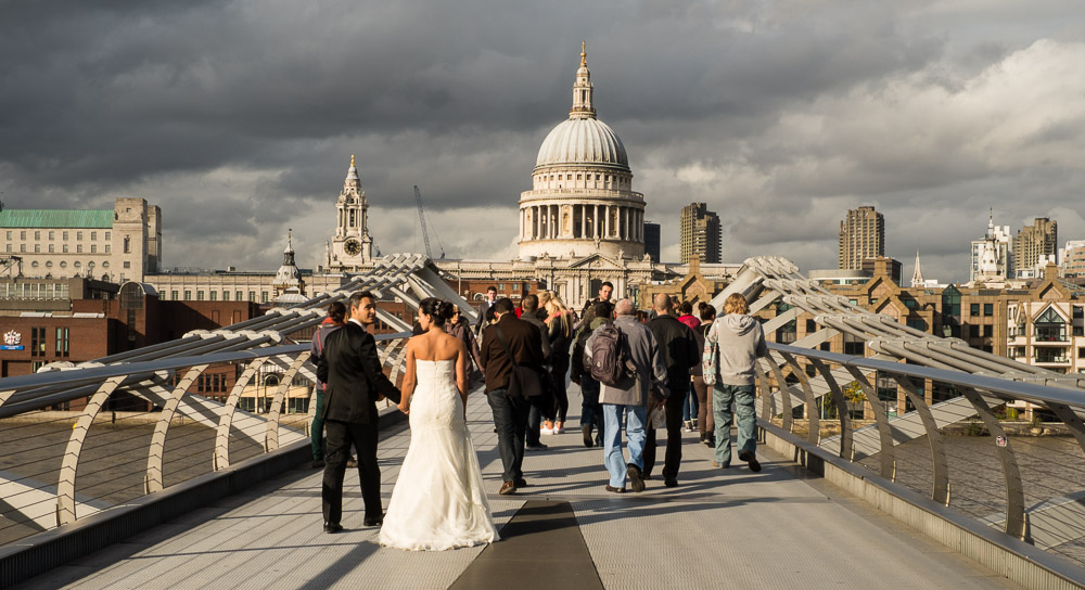 The sun on the foreground with the dark clouds in the background, along with this little party on the bridge and St Pauls in the background just said - shoot me. So I pressed the shutter button and hey presto.