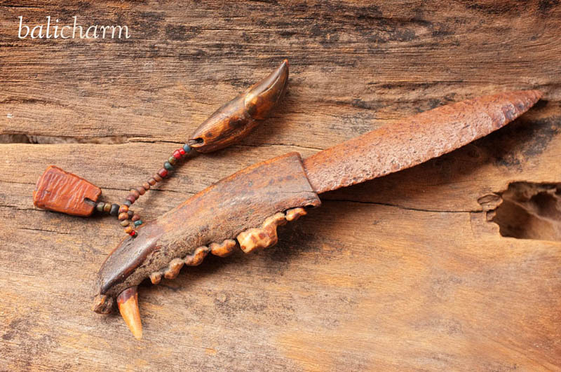 Extinct Dire Wolf jaw-bone handled dagger with antique flint blade