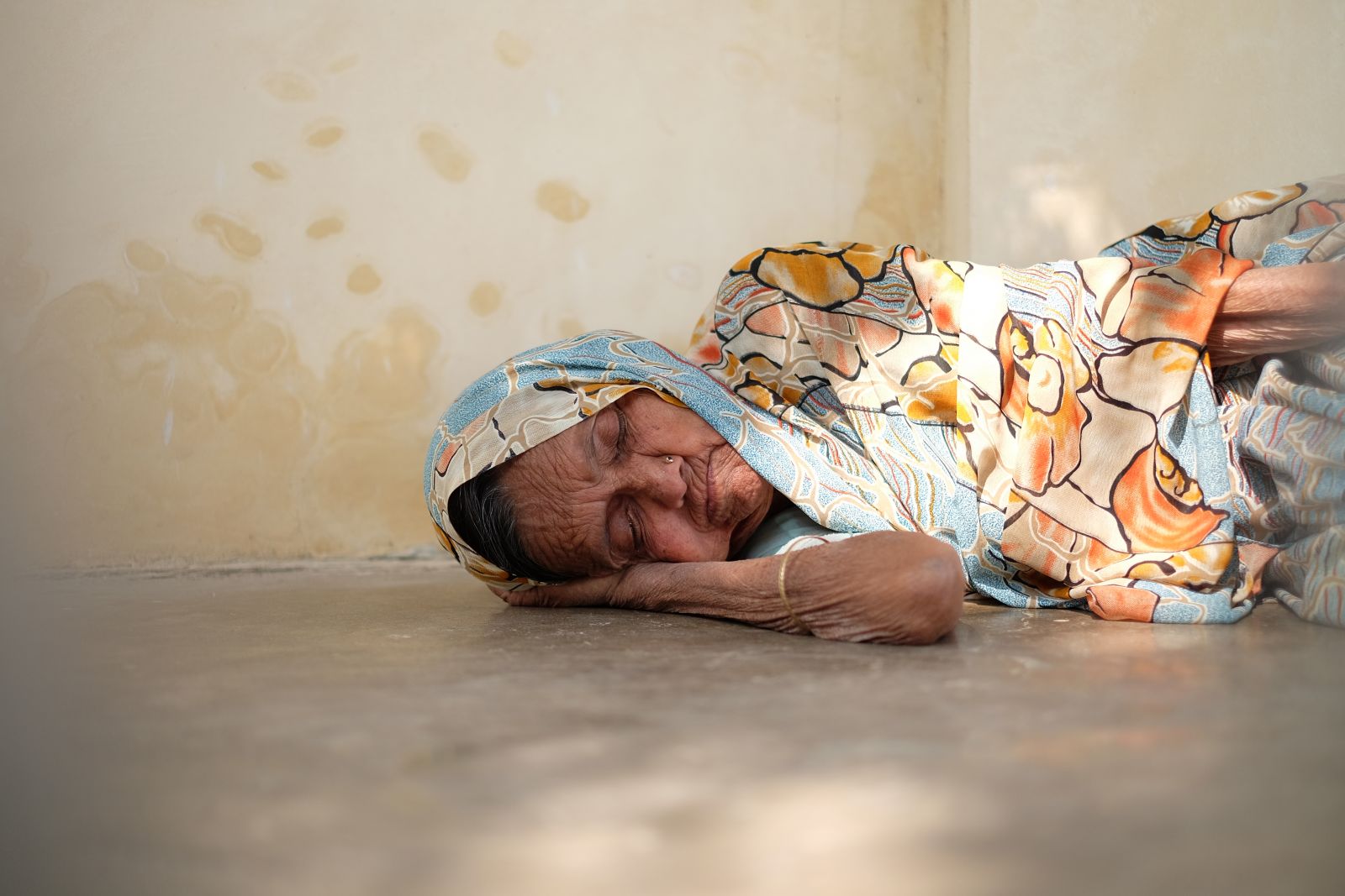 Peaceful old lady taking an afternoon nap in Udaipur