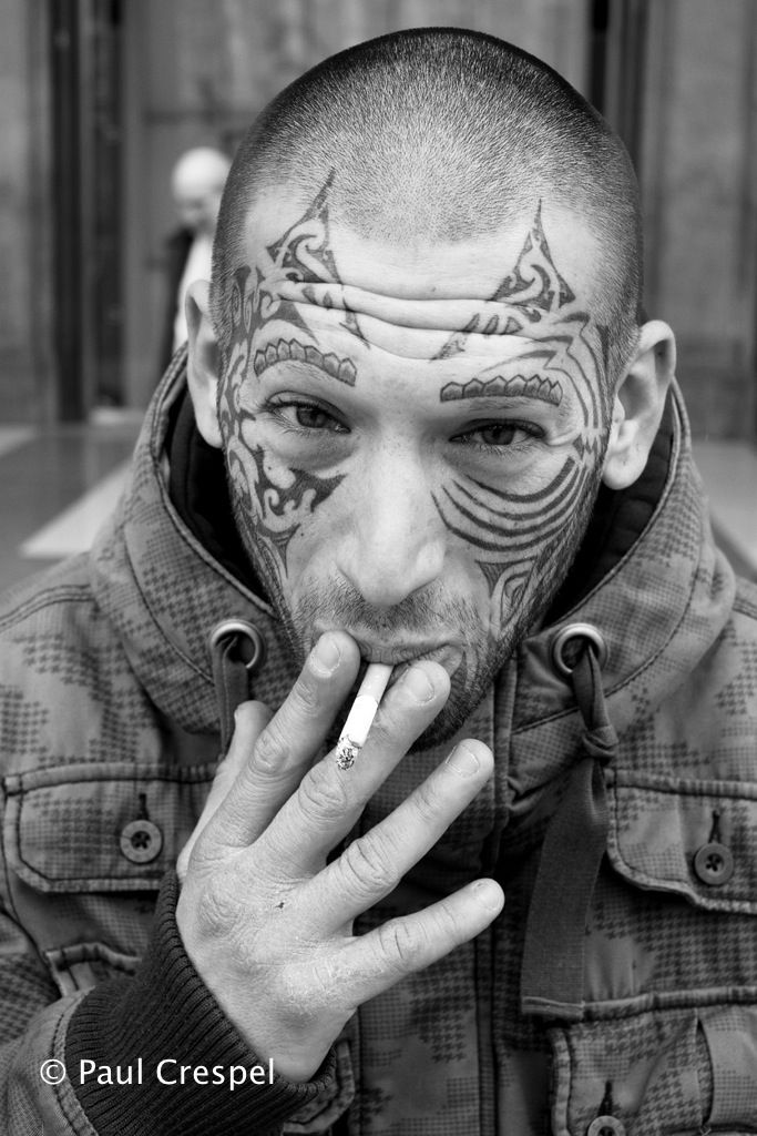 Italy - Milan - heavily tattooed man in Piazza del Duomo