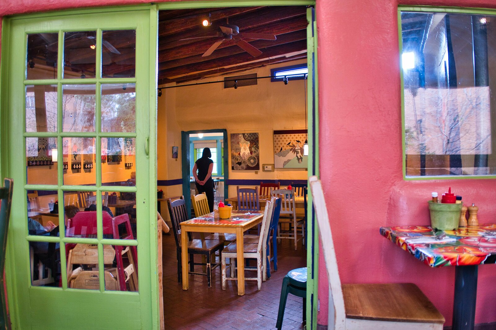An old and very popular restaurant near Santa Fe, NM. Rooms and tables are brightly painted. Fuji X-T2 with Fuji 18mm f2.