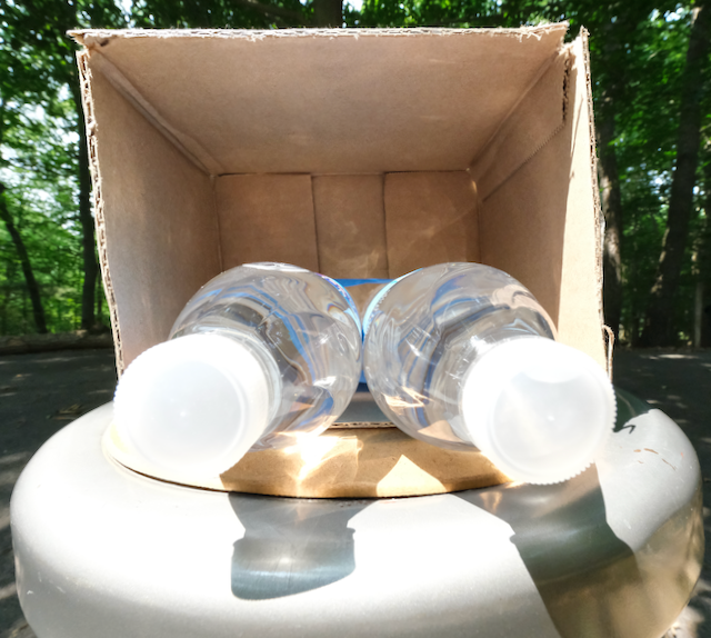 The new Fuji XF 8mm F3.5 arrived! And, with it, and with the 100-400 zoom plus the 2x tele extender, I took a couple pictures illustrating the perspective we are discussing in this thread. The long lens is 100 times the focal length of the short one. I set a workshop stool out in the driveway in full sun. On top I put a cardboard box with the flaps cut off, with two water bottles taped together inside it. I hoped this simple geometry would share some characteristics with the car in a shop pictured above. With the 8 mm lens I was able to take a picture from about 3 inches from the bottle caps. With the 800 mm lens I could take a picture from 72 feet. In both pictures the seat of the stool occupied roughly the same fraction of the viewfinder width. Then I cropped both pictures to slightly more than cover the stool seat. There's a huge difference in how the shapes look. Note how in one photo the inside side walls of the box are plainly visible (I was exposing for them) and in the other only the rear wall is visible. Also notice how the bottle caps flare wide relative to the bottoms of the bottles (which aren't visible but you can judge where they must be). All the round things are circular in the photos, and the box (though it's a bit bendy) has substantially straight outlines. Just to help with understanding the setup, I also included a very small file size iPhone photo.1 point -