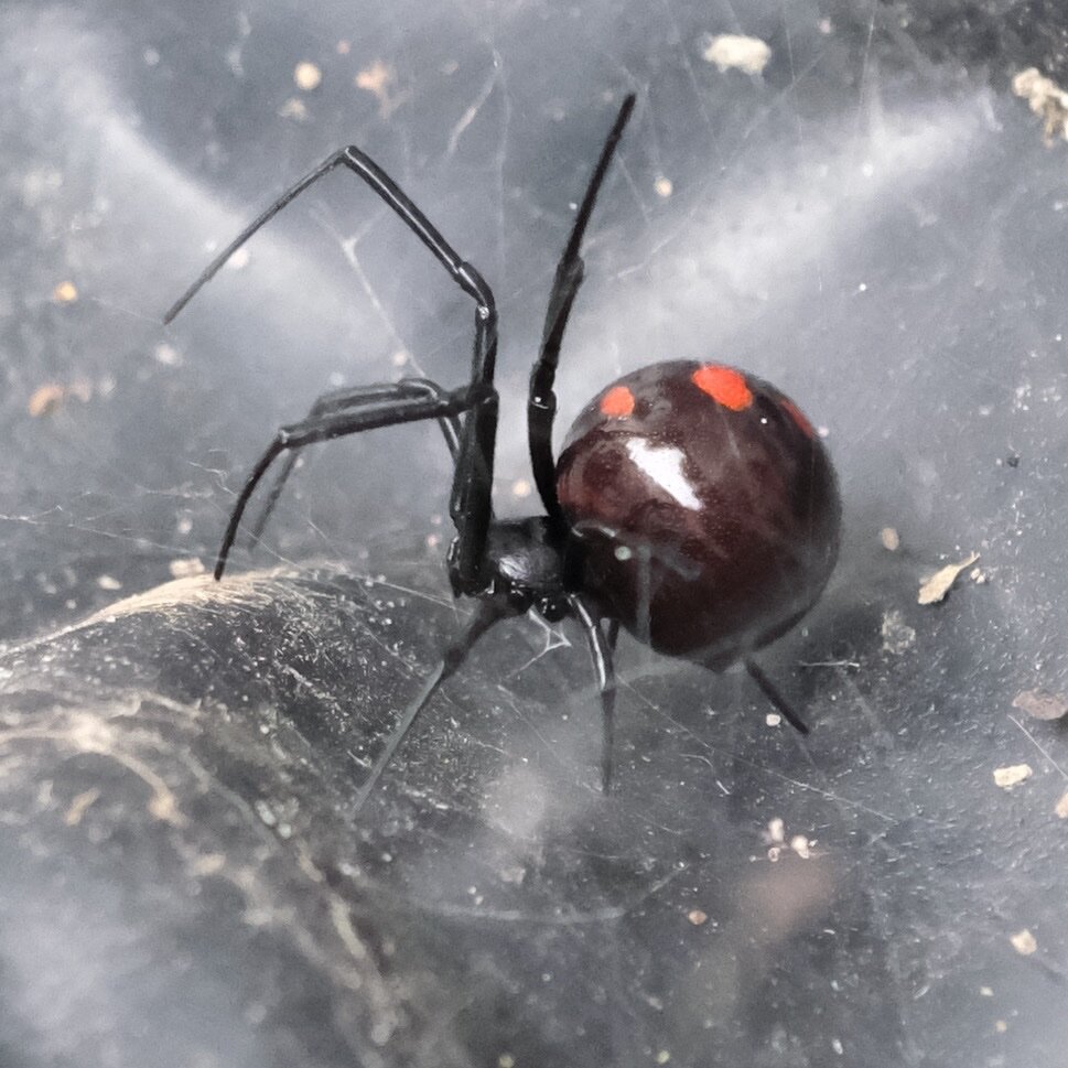 Discovered this beauty under the fake plastic boulder that covers our well, when I was mowing today. I kept my distance, and cropped after the fact, though I wish I had added my 2X extender to the 80 mm Fuji macro. Handheld at 1/1250 seconds with OIS, f/4, ISO 5000, overcast sky lighting. Google Lens identifies it as a Southern Black Widow.
