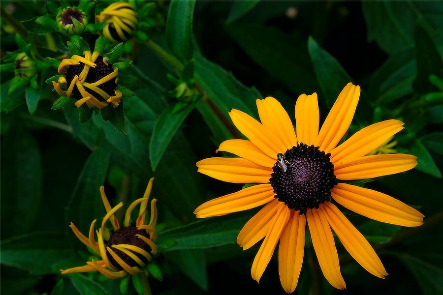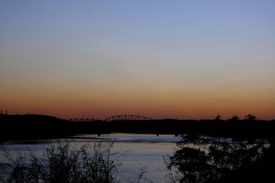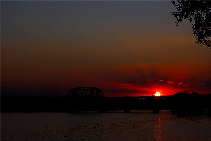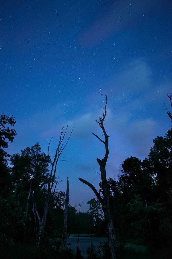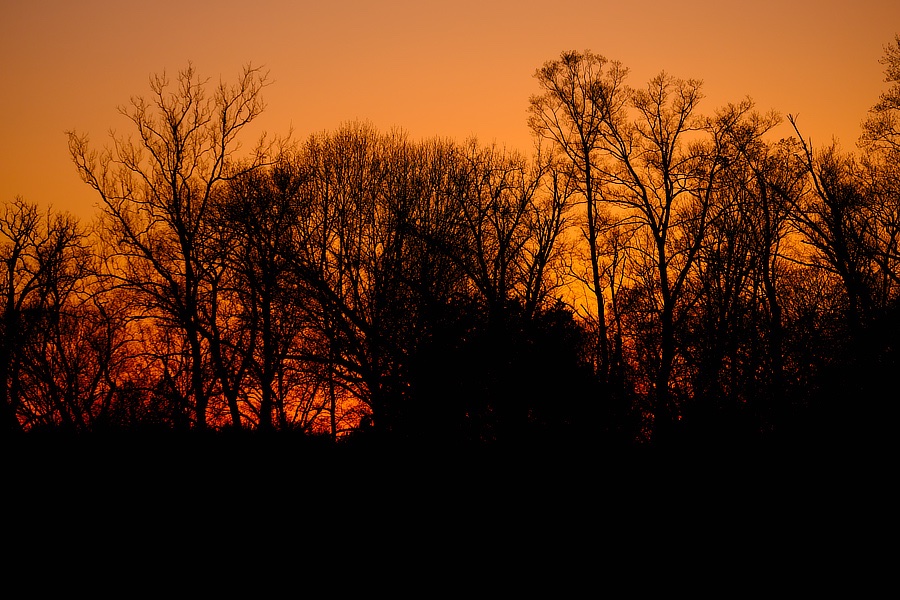 Okay, technically just after sunset. but the last of the sunlight is still coloring the clouds moving in. The "star" in the lower mid section (just below the tree branch) is Jupiter.