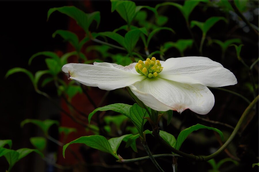 Dogwoods are like Poinsettias, in that the outer part (the white parts on these) are actually leaves. The flowers are the small yellow tipped green parts. Or so I have been told.