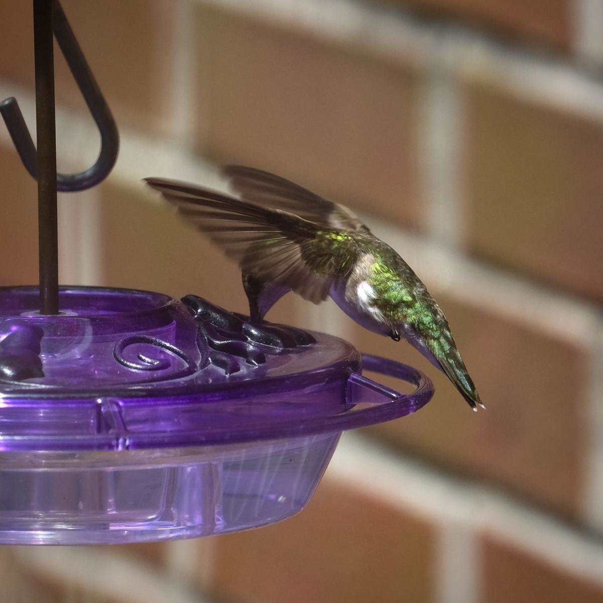 Female ruby throated hummingbird shot through my kitchen window. Fuji xt10, 55-200. ISO 400, 190mm, f 4.8, 1/1300, -67 ev