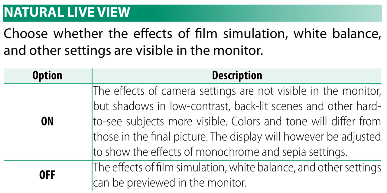 No worries, a pleasure. The histogram changes depending on the Film Simulation you choose. I think the Natural Live View is meant to give a neutral view when shooting with the intent to use RAW (to get the most data into the file for subsequent processing, where you choose the Film Simulation and other parameters after the shot had been taken). To answer your other question, I didn’t try White Priority or Ambience Priority in landscapes, could be interesting. -