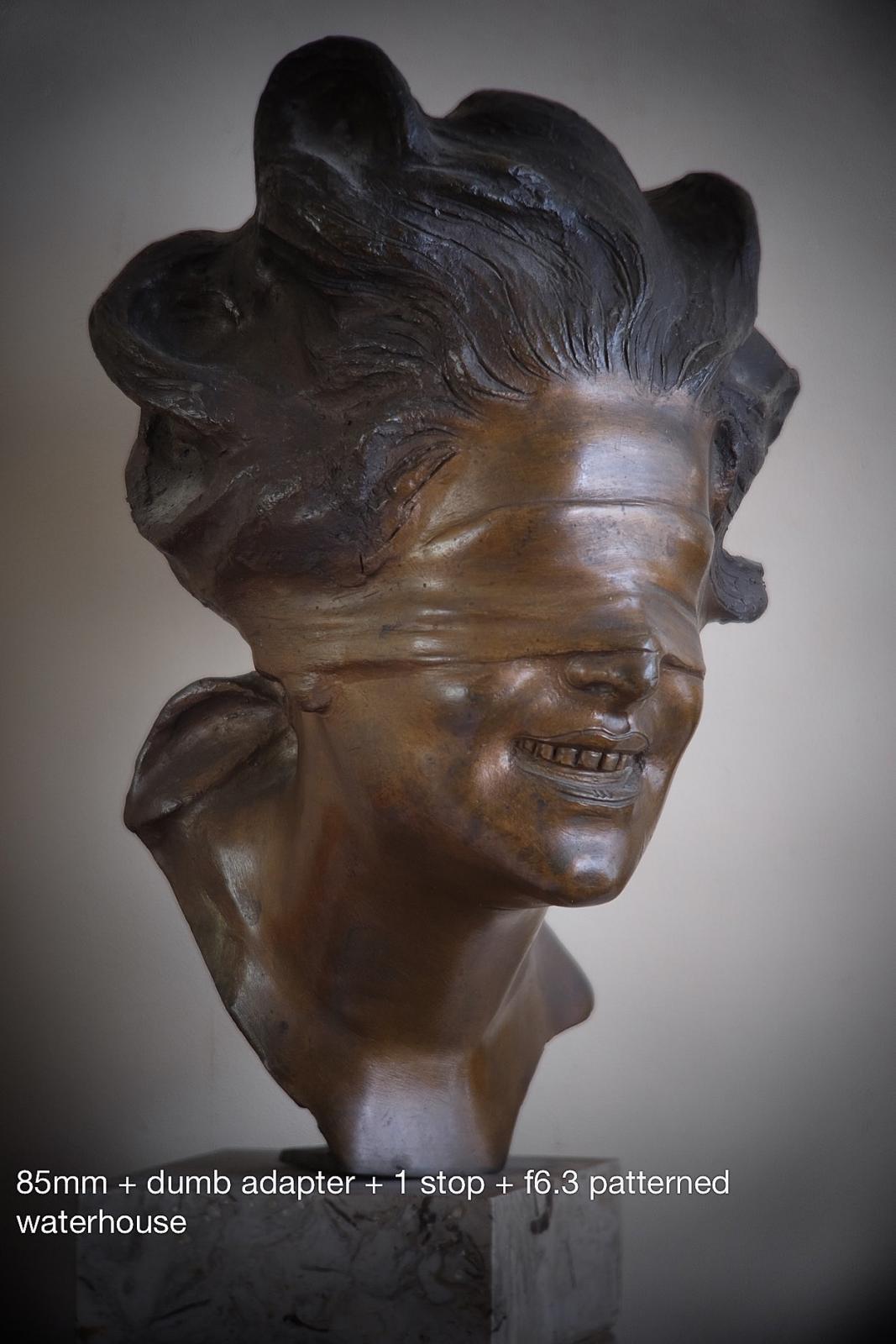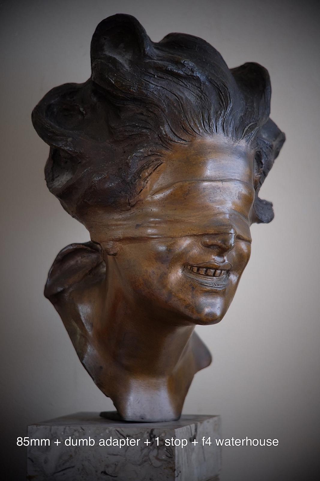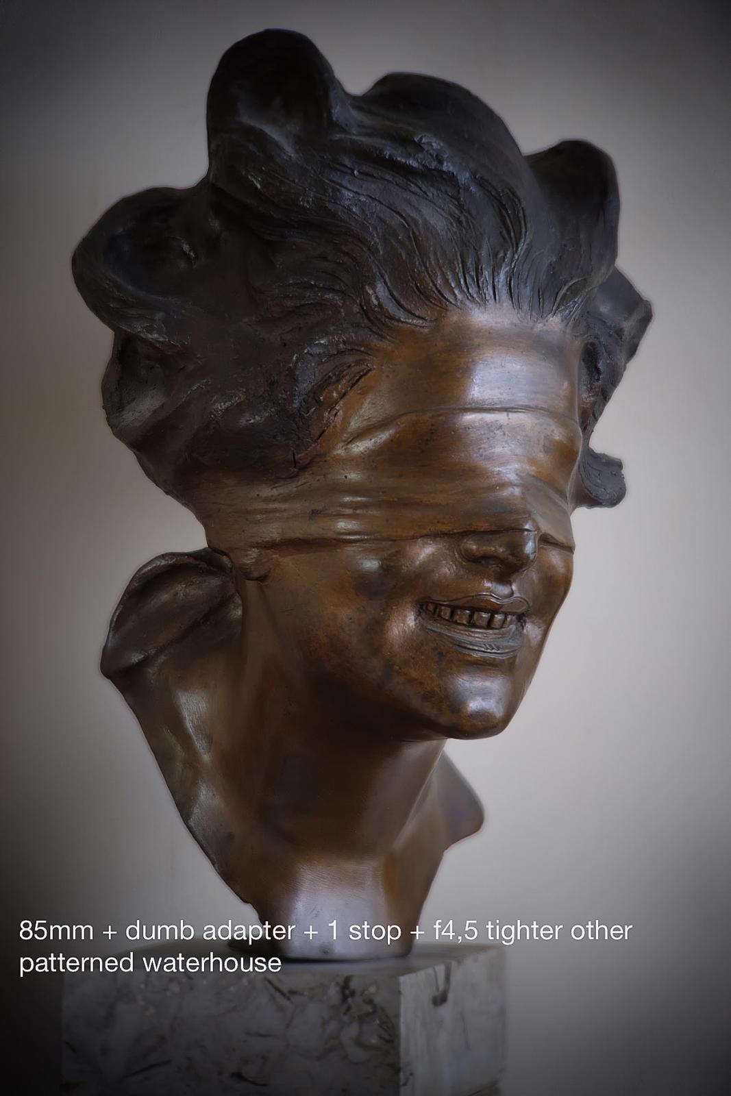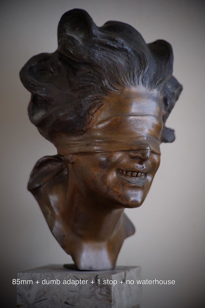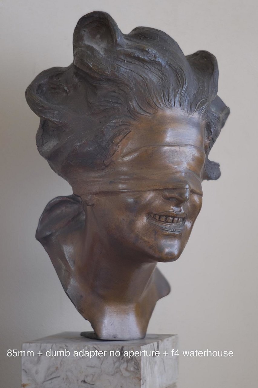 Ok the Canon EF adapter with aperture came in, I found out that it works very well but the only problem is that it doesn’t have a click stop in the aperture ( or any indications on the dial) so you have to either go by WYSIWYG in the EVF or count the stops roughly by seeing what it does to the exposure (in my case aperture priority tells me the shutter speed and every twice as long shutter speed is one stop stopped down). Maybe at a later time I will also apply some markings in order to be able to get there without trials and errors. I’ve shot a test outside the window and fully open you see the swirl of the lens then I stopped it down roughly 3 stops (more than that and you will have more or less pronounced vignetting). I am also going to do some of my usual tests with the fortune head for portraits ( I already took a few shots with a real person and I see that vignetting at closer focusing at roughly the minimum distance is much more evident than far away). See for yourself the tree ( where you can clearly see the swirl) test. One thing that it is not so evident in these pictures ( because of a little enthusiastic PP) is that the aperture has more influence on contrast that of depth of field -