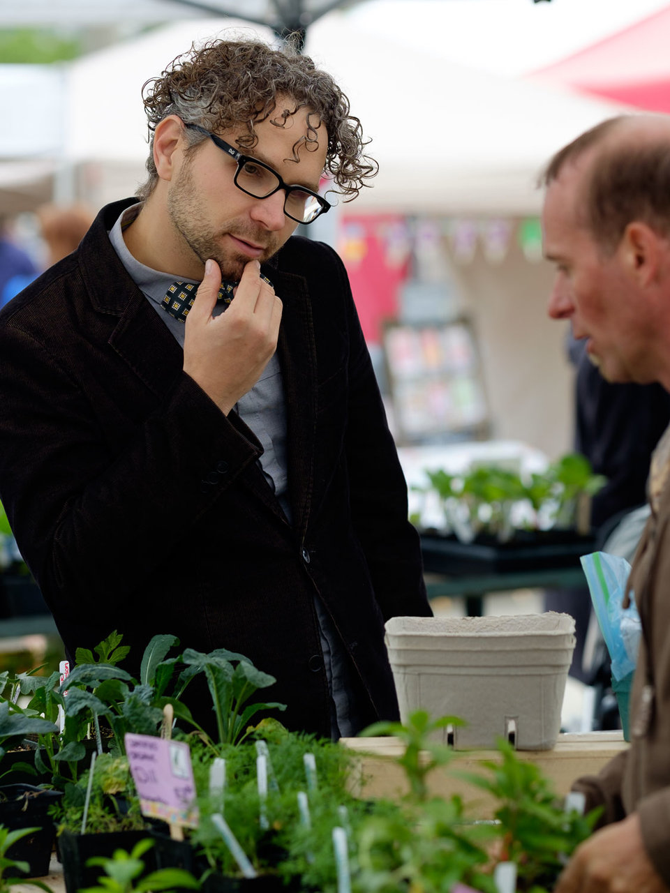 One of my favorite farmers. Good food, good plants, and I like his look.