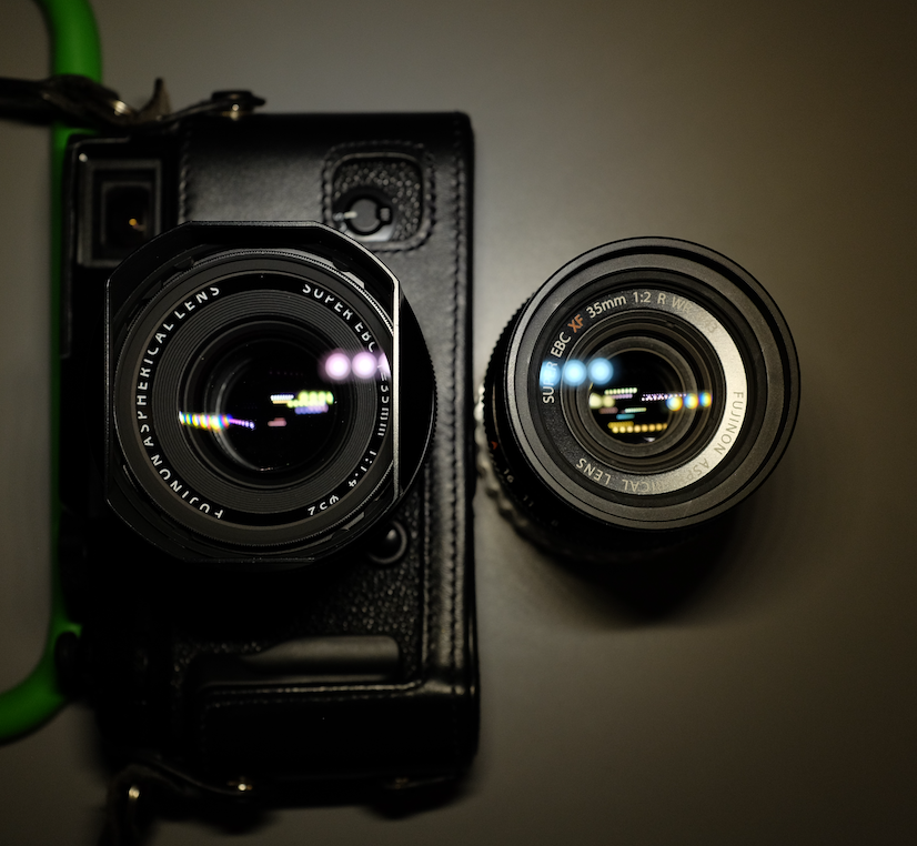 Question for anyone who owns a Fuji protector filter for their lens. I have the PRF-52 for my 35mm f1.4 lens and the PRF-62 for my 23mm f1.4. I noticed the light reflecting off the front of the filter glass is different between the two filters even though they should have the same coating. The light reflecting off the front of the PRF-52 is PURPLE while the light reflecting off the PRF-62 is BLUE. The attached photo illustrates this using an LED strip as the light source. (The filters are mounted to the lenses in the photo, so ignore the extra reflections from the lens elements.) Can owners of Fuji filters tell me if they see the same colors reflected off their filters? Both filters use Fuji's Super Electron Beam Coating (EBC), so I was expecting the same color in light reflection. I wonder if it's possible one filter is fake. However, all the packaging looks legitimate, and I have yet to notice any striking differences in optical performance. Thanks for any input from you folks. For those interested, here's a link to Fuji's product page for the filters: http://www.fujifilm.com/products/digital_cameras/accessories/lens/
