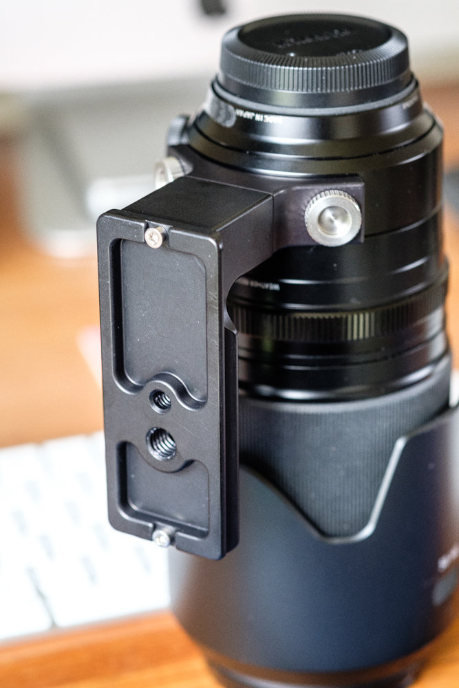21. Milandro, this is the Hejnar replacement tripod foot attached to my 50-140mm lens, please note the two threaded holes, allowing all sorts of gizmos to the foot! Its only drawback is the price!