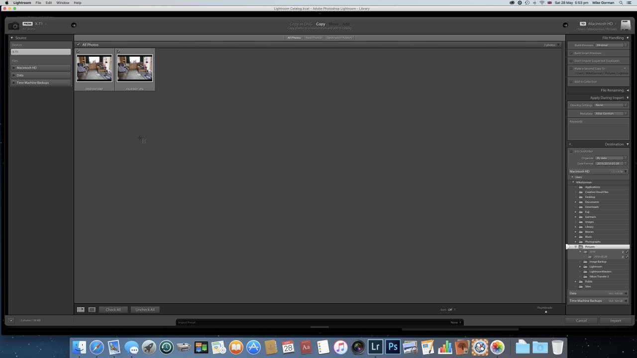 Gigas, I have just tried that and immediately the Photos app opens with an import dialogue! attached is a screenshot of the import dialogue of Lightroom which sees both RAF and Jpeg files as you can see! Click up PS Photos only sees the Jpeg! -