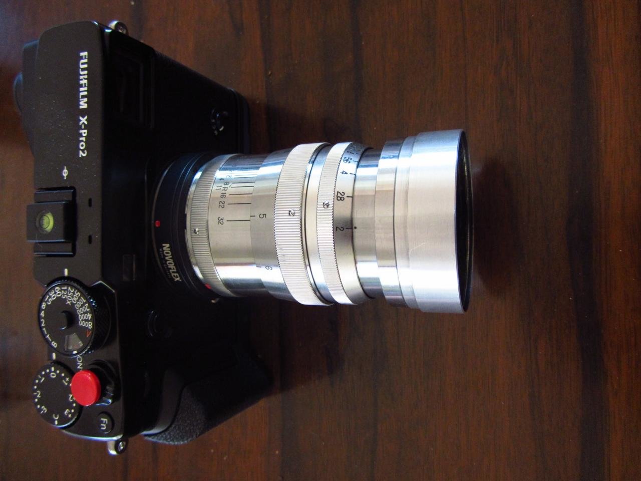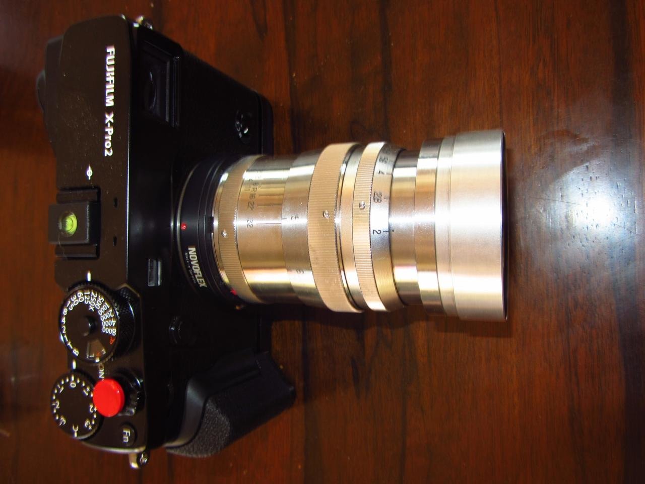 2. I tried the X-Pro2 w/ a Nikkor P.C 8.5 cm F/2... Nikkor P.C 8.5cm F/2 (Nikon resources) Nikkor P.C 8.5cm F/2 (Nikkor Story - The Thousand and One Nights) ...which is all metal and manual focus... tried shooting using focus peaking (...high red color)... the adapter used is a Novoflex (...the other one, theFuji M-mount adapter is mounted w/ a 28mm Leica)... easy to focus and the photos (...three JPGs) are not so much soft... for portraits maybe could be useful even if what'smissing is a little of contrast but I guess that shooting RAW could improve that. Attached are the images of the setup (...the quality are not good 'cos shooted w/ a P&S camera!).