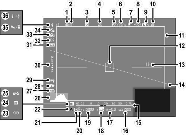 1. When I want to focus in manual mode I tend to use the optical viewfinder switching on the EFR (...the so called by Fuji "Electronic Range Finder"), that's that part/zone of the screen placed in the bottom right corner of the viewfinder... Optical Viewfinder (Fuji site) ...there's a n "issue", at least for my eye(s)... if the eye pointed to the viewfinder is not perpendicular to the viewfinder then the EFR is somewhat "translucent" and appears more little than the digital image shown on it... so it's really difficult, especially in some conditions, to see the digital image 'cos it's clearly visible the background optical image framed. I don't know if it's an issue of the camera and if someone else experienced this... I owned an X100S that had/has the same feature but I don't remind this difficult to see the little digital image of the EFR (...I owned a X-T1 too but I think to remind that this one have the smaller portion of the digital AF image out of the frame). P.S.: Hoping I was able to explain what I mean 'cos english isn't my first language.
