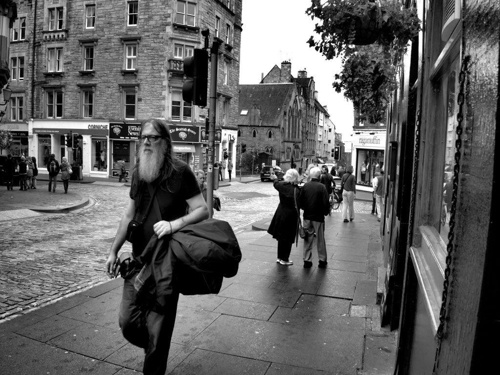 I can't remember which viewfinder mode I was in. I was playing around with my Xpro1 and found it is so easy to shift the focusing point to the left or wherever. Just hold down the AF button and use the directional buttons. I should have done that before first use. Next time I will place the focus point to one side, depending which direction I'm facing like I should have with the bearded man photo. I will have to practice zone focusing on the wife until It's more towards second nature. I enjoy using cameras so I think I may, if funds allow, get hold of a Rollieflex TLR at some time in the not too distant future and take that out on the streets. I used to enjoy the fact that the leaf shutter allows shutter speeds much slower than usual due to its mirror being static and the leaf shutter being so light and vibration free. There is also the advantage in people not realising a photo is being taken because they don't see a camera at your eye. They think you're just looking at your camera's settings or something. At least it'll be easier using a coloured filter with B/W film than trying to use a polarising filter. Man, that's a hoot!