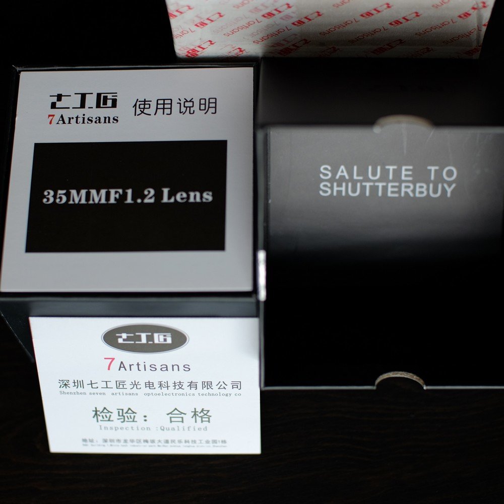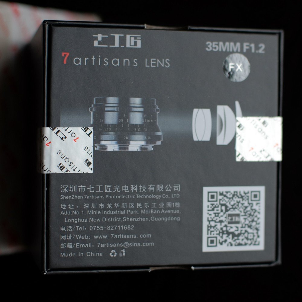 Once the 7artisans 35mm F1.2 got announced on Fujirumors I started watching their lens and exploring more details online waiting for release. The sales started on December 28 2017, but I didn't find any good review of this lens, so decided to purchase and try it myself. This noon I've received free sample directly from 7artisans factory which they generously gifted as a result of our recent cooperation ( thank you 7artisans Team! ) I'll break this review into few parts to fit more images into this review. You can also directly read extended review version. Unboxing 7artisans 35mm F1.2 lens - Part I The parcel arrived fully wrapped in white film with 7artisans logo. Inside I've found carefully bubble-film packed lens black box that looks cool. The box is sealed with two factory stickers. You may check for "FX" extra sticker in the top right corner before unpacking to make sure the correct mount is delivered. It's the first lens box I got with QR code, will check it later : ) First interesting thing you will see in the box is the "Salute to shutterby" shiny phrase, warranty card and manual. The lens is wrapped in plastic bag and secured inside high density foam (reminds me about early Fuji XF lens packaging). Lens much smaller than I expected and looks very cute. It comes with metal front cap and plastic rear cap. The glass looks very clean, I didnt notice any visible dust. My sample has SN: A6351608 , and I see SN: A635003 on the 7artisans site, so it seems to be 1608th sample produced. Lens glass is definitely multicoated which I can see form reflections. The focus and aperture rings are rotating very smooth and not too loose.