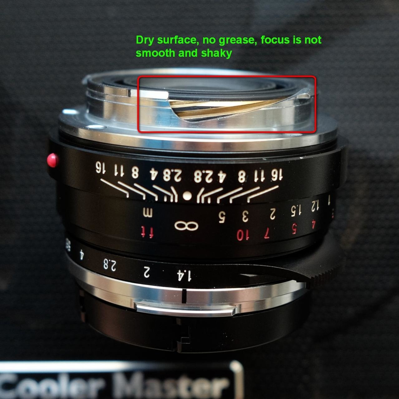 Finally found time to re-lubricate inner area of helicoid, it was wobbling a bit making it feel falling apart on camera : ) Found great guide for CV 40mm 1.4 : http://helino-photo.blogspot.com/2016/08/how-to-fix-squeeky-voigtlander-nokton.html Here's my sample deeply disassembled: