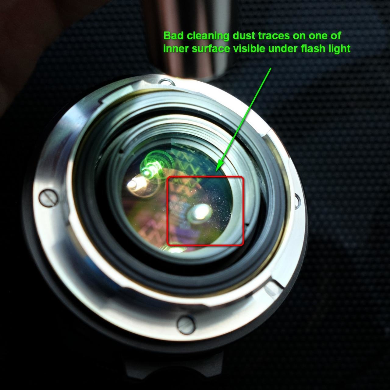 Yes, the dust is fine, I see it in very new lens out of factory. The bad sign here is traces of moving cleaning clothe/swab, just hard to reflect it on the photo. Looks like that seller didn't know the lens is kind of refurbished and currently offering partial refund solution. I took a lot of time to explain and demonstrate signs to the seller, but finally seller got the point. If partial refund is made, I'll buy the good grease, lubricate and clean the lens properly then give it good use.