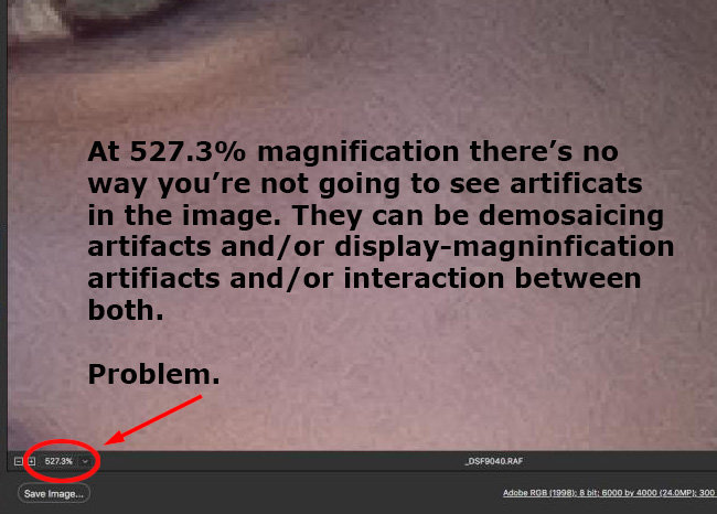 8. Depending on use I agree the difference can be minor. I used PhotoNinja in the above post but basically almost any alternative raw converter does a better job than LR rendering fine detail from RAF files. Iridient is a popular choice, but Capture One is also excellent -- SilkyPix is very good as are some of the free raw converters like Raw Therapee. I also make large prints and, you'll have to take my word for it, when I run a print with my Epson 9880 or Canon PF5100 I can see the fine detail weakness if the image is demosaiced in LR as opposed to one of the alternative converters.