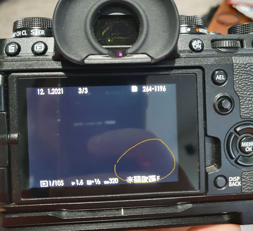 4. Hi All, First time poster, long time lurker and some time joker here, now in need of some TLC... I was admiring some shots on my X-T4 when I saw it, and it permanently seized my eyeballs and my solar plexus - the godforsaken "reddening" of (a portion) of the LCD screen when exposing or playing back dark captures. Attached image for reference. Has anyone else experienced this? Also, I'd really appreciate if anyone could confirm whether the LCD on their X-T4 has a horizontal line pattern when inspected, switched-off, under a light source. Mine does; just wondering whether this is normal or the hallmark of a defective panel. Cheers, Azeralpha