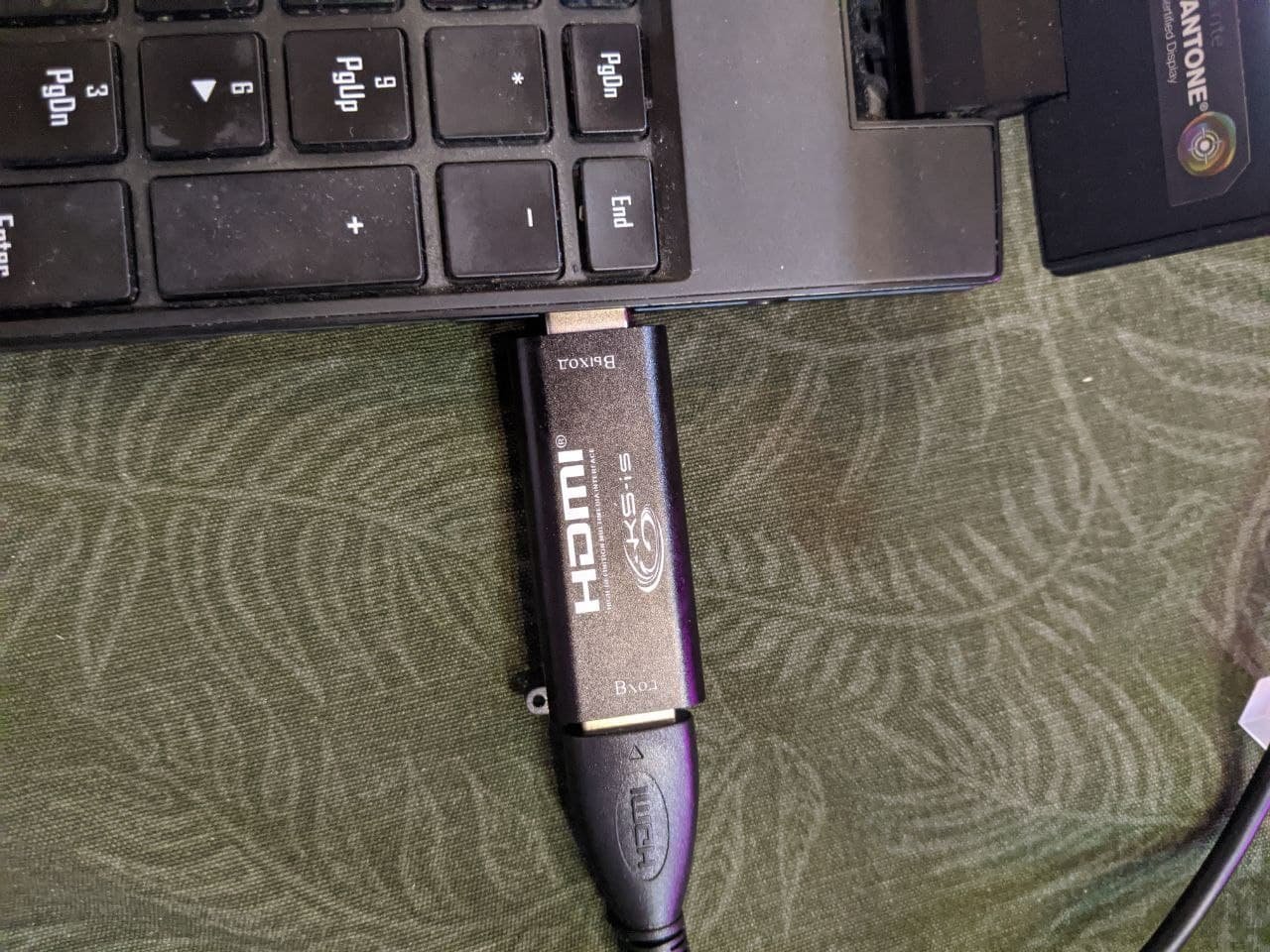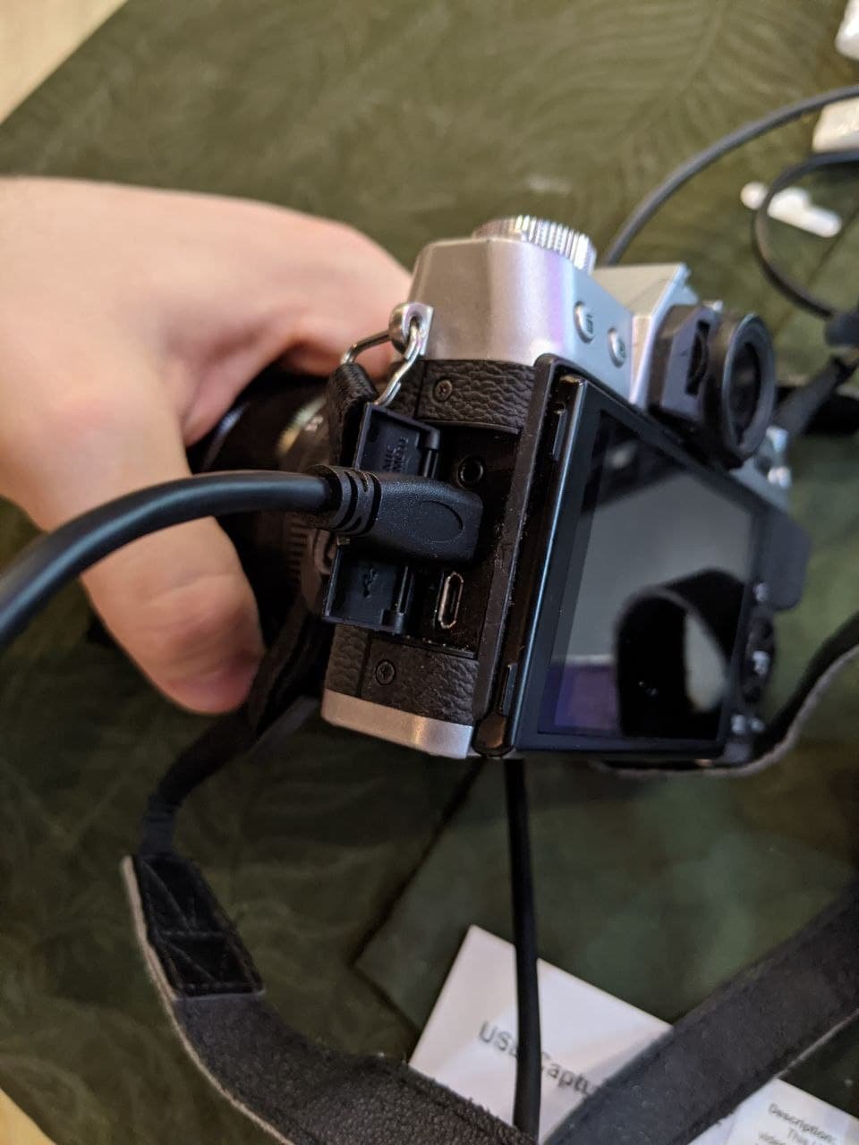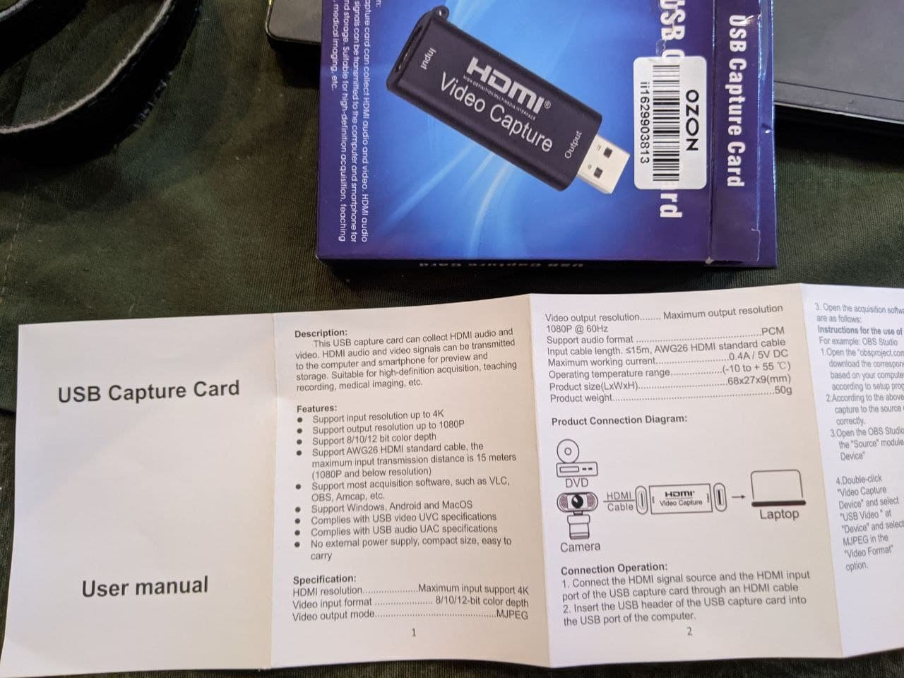 The camera is connected via microHDMI-to-HDMI and a cheap USB capture card.