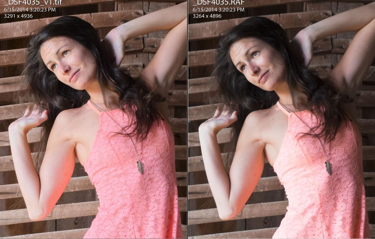 24. Here are a couple of comparisons I've posted before, but are relevant to this thread: RAF from PhotoNinja, exported as a tiff, vs doing what I could to match it in Lightroom Unfortunately, I don't have comparisons between PN and Iridient saved anymore.