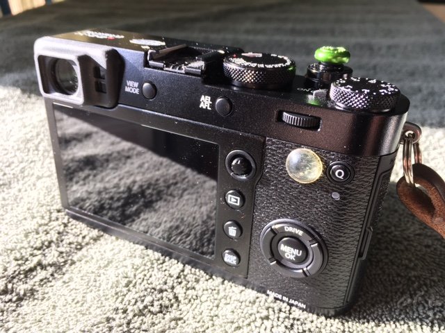 Just got an X-100F and find it a bit frustrating due to lack of thumb grip and the location of the Q button, which is exactly where my thumb goes when I grab the camera. I decided to try to find a solution other than the Thumb Grip from Lensmate and found a very cheap solution that works quite well for me. I added a 13mm (1/2") Self Adhesive Vinyl Bumper commonly used on the back of picture frames. Placed it to the left of the Q button and now have a place to grip that is not in the way of any controls and gives me a place to hold the camera securely. It's a clear round bumper - see photo attached.