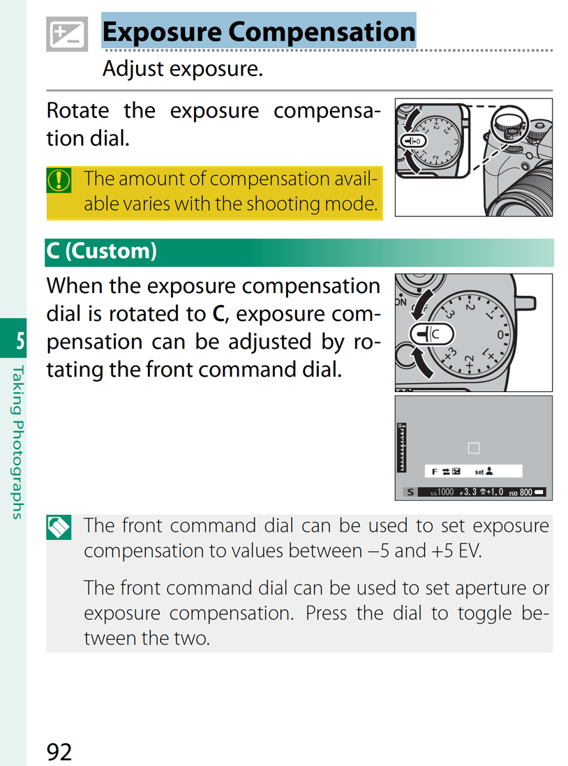12. Exactly, EC is for the various AUTO modes. In manual mode you have full control over exposure, the camera does what you tell it to do. The controls on the Fujifilm X cameras are made for manual shooters. The whole retro placement of aperture ring, shutter dial and ISO dial makes it super easy to shoot in full manual. They should make it more explicit in the manual for newbie shooters.
