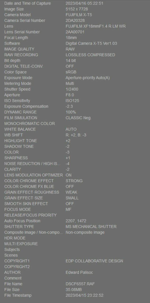 @jerryy I looked at the EXIF file, and noticed something that maybe you'd explain - The "INITIAL DATE AND TIME OF CAPTURE" time stamp (I was in Spain, but the camera settings were left on NYC/east coast TZ - lol) is notably different than at the bottom, "FILE TIMESTAMP" that's BEFORE the image capture datestamp. All I can think of is WTF, did I discover time travel? I have no idea why they are different, as in before the image date. It was copied to an iPad for backup storage, but that was on accurate local Spain time when I did it, and that TZ is forward of NYC. Confused.