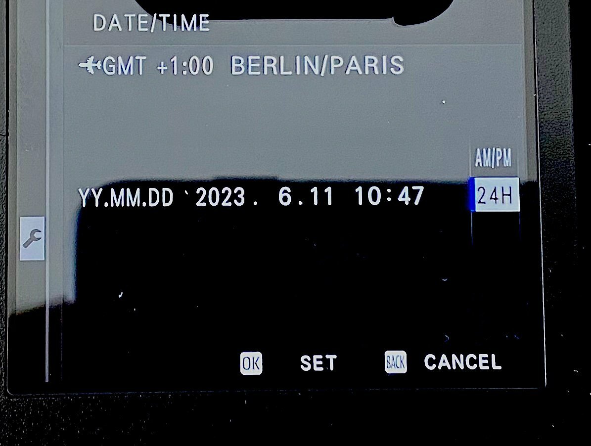 On my 100S V2.01 firmware this is no problem it shows 24/am-pm above and I can choose which I prefer. For me it is always military time, I make far less mistakes that way. By the way, the AM/PM does not show until I have cursored through the date and time to be on the 24H, then you can just simply choose AM/PM and accept. Screen shot shows that on mine that works after the firmware update.