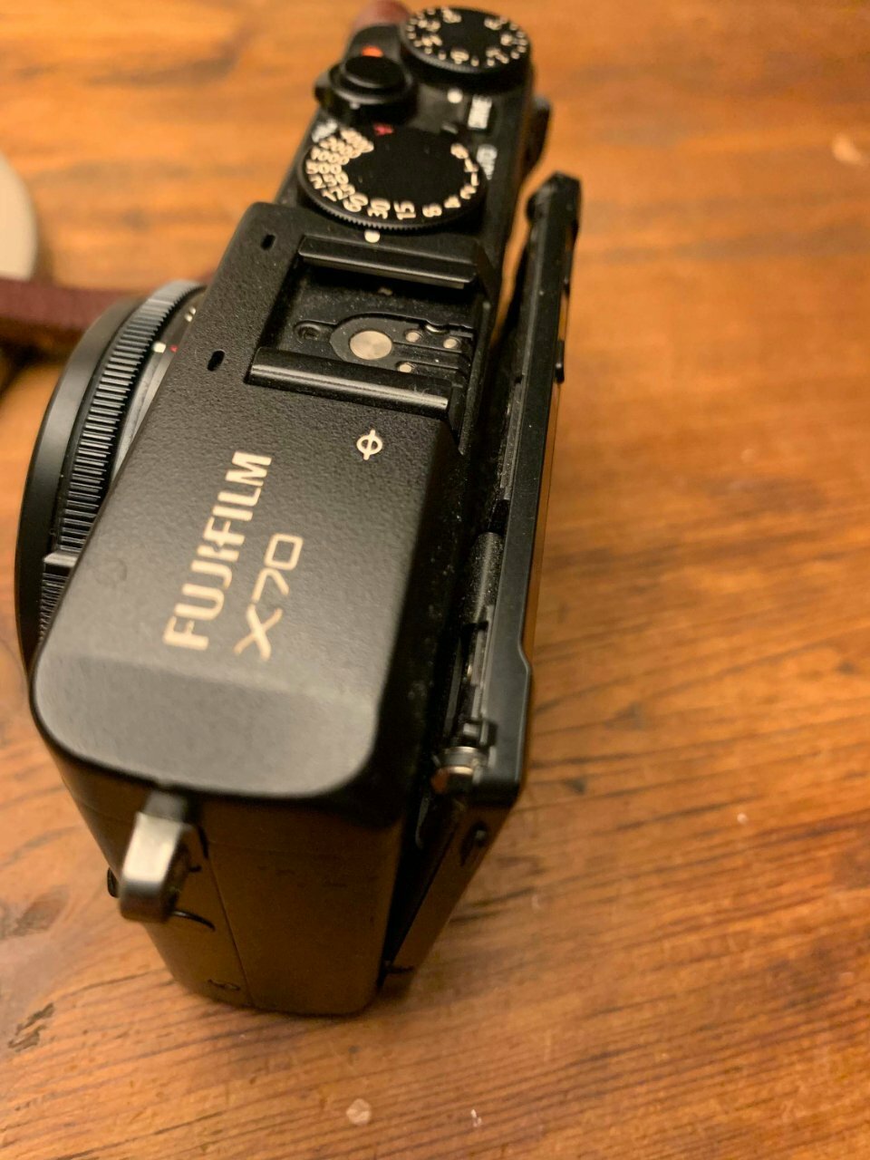 I'm planning to sell my Fuji X70, it hasn't been used for years and now I took it out from a drawer and saw that the display must have gotten a hit or something as it is not aligned to the body.