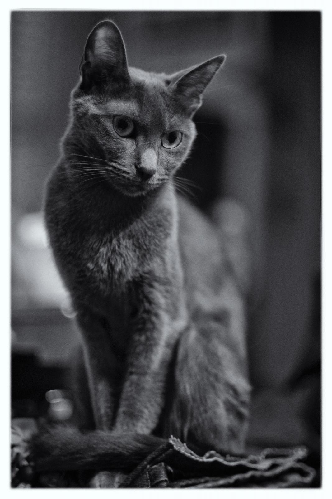 Some shoots of my cat @ f/1.2 with lamp light, developed from raw with Silkypix 2.0 by Fuji and then some post production with Silver Efex 2 (tonal control, grain and borders)