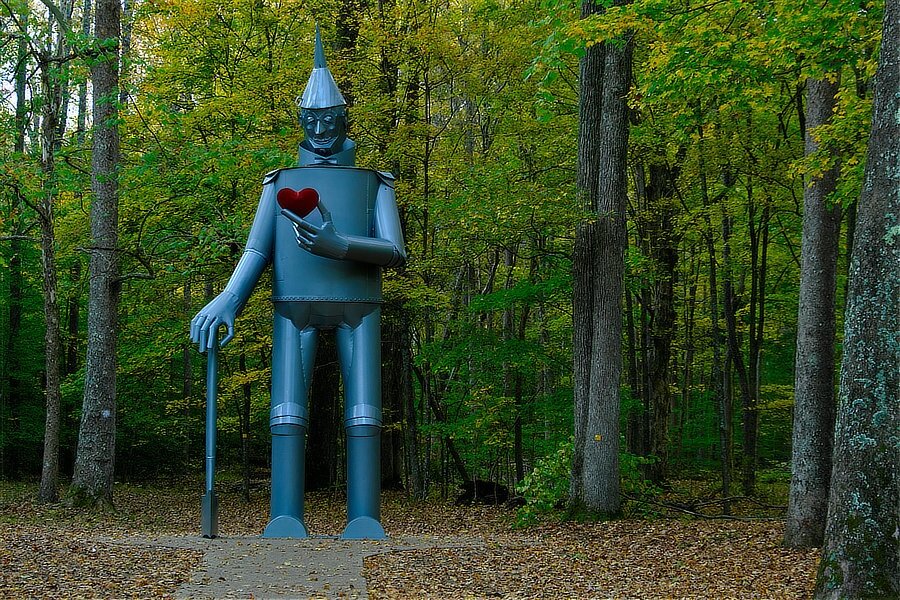 9. Wondering (wandering) around in the forests, one comes across many critters; deer, squirrels, birds, foxes, bobcats, trolls, twigs... all sorts of critters. But Remember The Tin Man. He too is out there, The Heart of the Forest: The Heart Of The Forest is currently roaming around The Bernheim Forest and Arboretum in Kentucky, USA. https://bernheim.org/tin-man/
