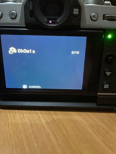 16. Here you go: This is the back of the camera ready to go (no app or intervalometer started). The arrow is pointing to the exposure settings. Here they are in the app. And for reference, this is the back of the camera when the intervalometer is running: The biggest problem is that currently, the app does not work with intervalometers. When I am shooting astro photos, I use the intervalometer to grab a sequence, then use the app to grab a shot and use it for plate solving, focus checking and exposure checking. Then switch back to the intervalometer for another batch. As long as the analysis time is not too long a stretch, there is not a problem.