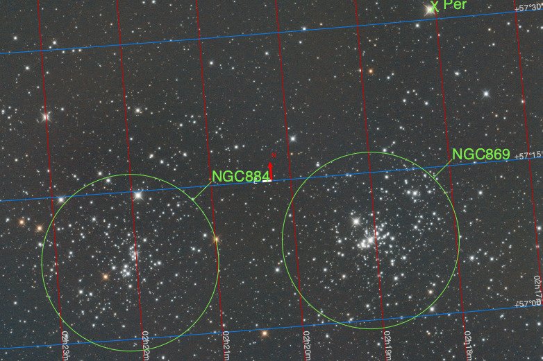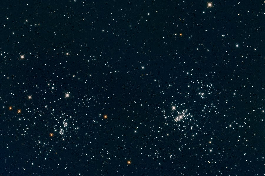 2. Two for the price of one, ..., Doubling your Cluster fun! Together NGC 884 and NGC 869 form The Double Cluster in the Perseus Constellation (close by the Cassiopeia Constellation). This is the equivalent to a 49 minute exposure. The Double Cluster is popular with the binocular and/or small telescope using observers, and in dark skies it is quite visible just by looking up toward Cassiopeia. https://www.constellation-guide.com/double-cluster/ https://science.nasa.gov/double-cluster-perseus https://earthsky.org/clusters-nebulae-galaxies/double-cluster-in-perseus/