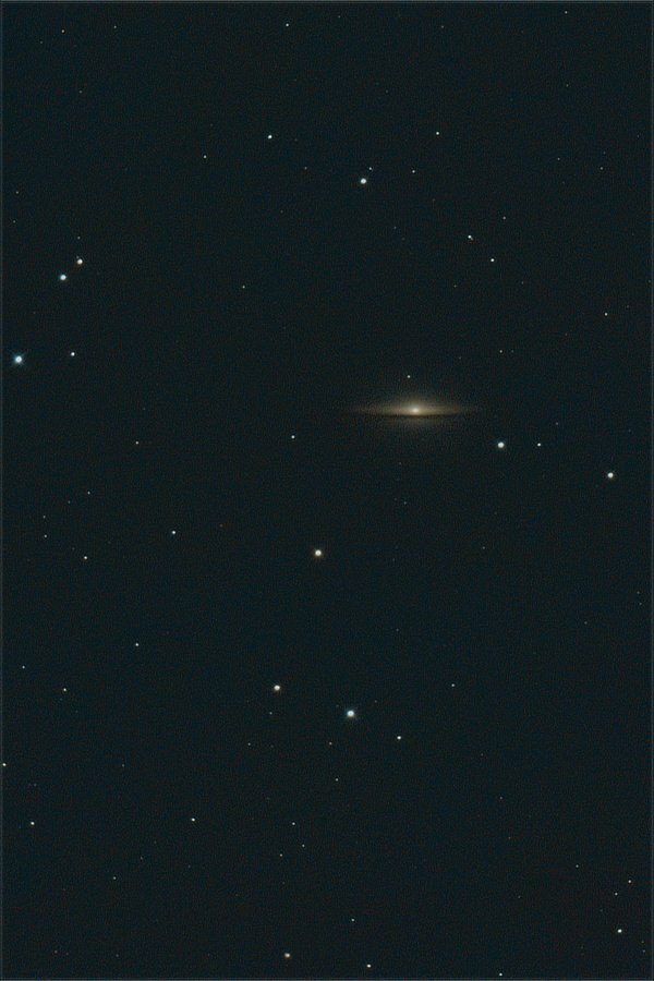 5. A big hat can keep the hot sun from melting your head. The Sombrero Galaxy, Messier Object M104. This is the equivalent of a just under 134 minutes exposure. https://www.messier-objects.com/messier-104-sombrero-galaxy/ https://en.wikipedia.org/wiki/Sombrero_Galaxy https://www.nasa.gov/feature/goddard/2017/messier-104-the-sombrero-galaxy