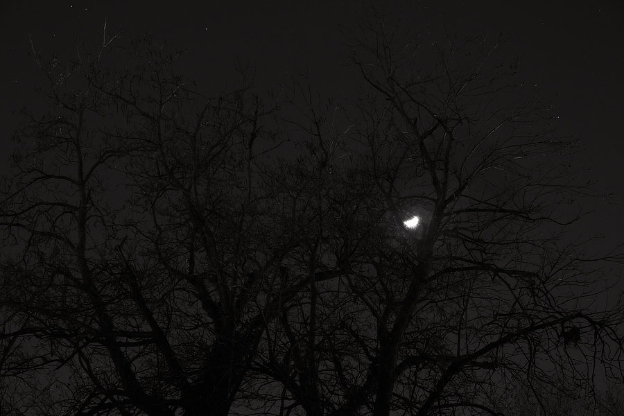 Spring moon. Winter's ice and snow have packed up and went somewhere else. That is, at least in the area where I am. Sure, a late storm may put lots of the white stuff on the trees and ground, but with temperatures in the mid 60s (~ 18 - 20 degrees Celsius) that scenario is looking less and less likely. So, Until Next Season!
