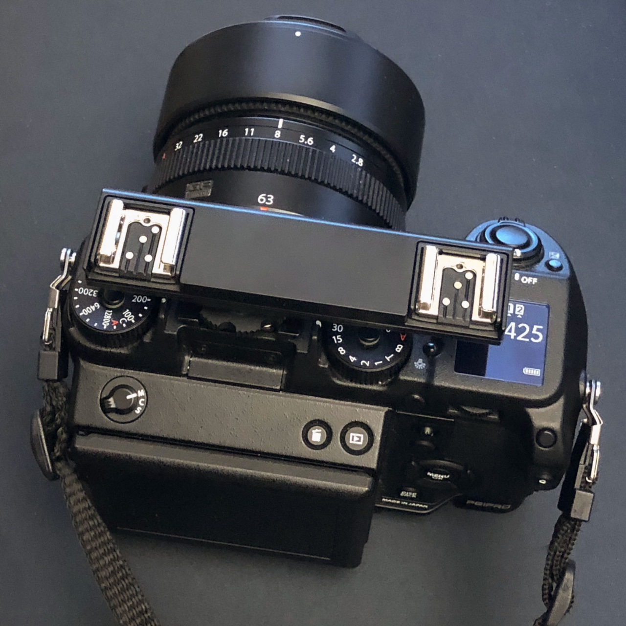 I contacted the Fujifilm support in Germany, the problem is apparently known. The flash shoe on the GFX50S (on the camera body, when the viewfinder is removed) is not identical to the flash shoe on the viewfinder, so no trigger, splitter or similar should be used here, as there is a risk that it cannot be removed, as in my case. Now I have sent the camera in and I hope to get it back soon so that I can work with it again. Unfortunately, this is not mentioned anywhere in the manual. But maybe one or the other will benefit from my experience.