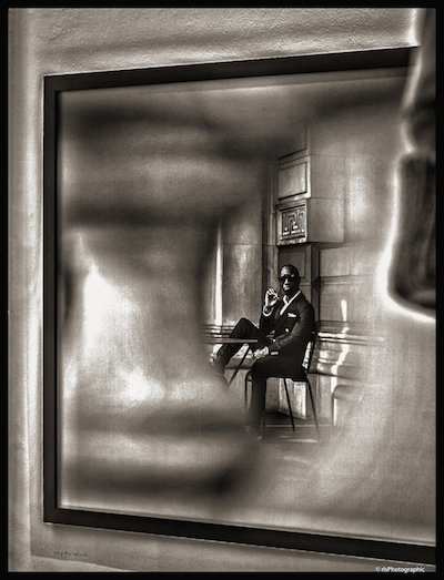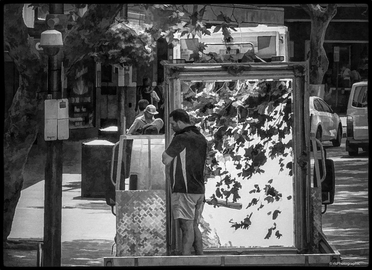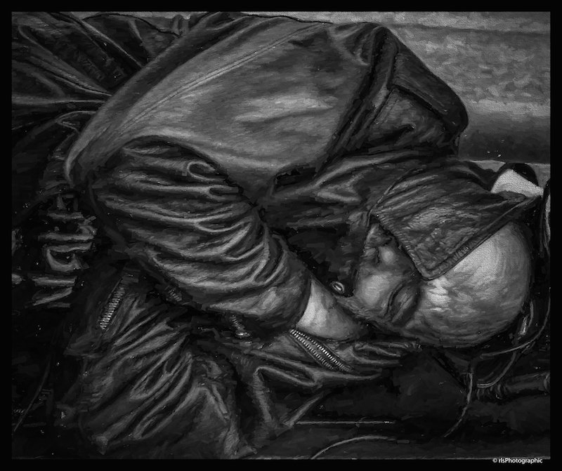 If l give you a little background to the image, it might assist you. The image is very much a grab shot, as at the time l was on public transport (moving ), and therefore l was constricted with what l could achieve. Having seen the developing image l felt it warranted being captured, but there was a problem, and a big one at that. It's shot through smudged and filthy glass. Believe me, what you see now is a distinct improvement on what came out of the camera. However as l liked the image, and the potential story about to unfold, l thought it worth persevering with - after all not ever image has to be perfect to have some merit (well at least to my eyes anyway).