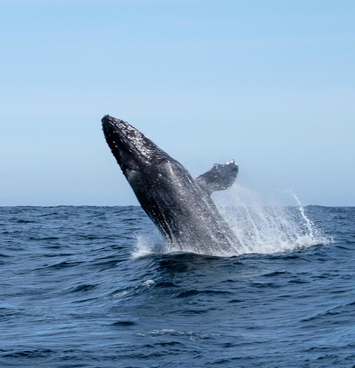 I went whale watching earlier this year, from Monterey, California. My main observation: things can happen REALLY FAST with whales. What you're hoping for is that they'll end their 3-or-so minute dive with a spectacular breach, and if you get one, it can be in any direction around the boat, and is over very quickly.