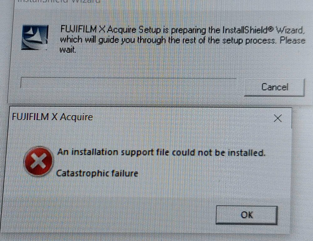 1. Hi everyone, I am new to fujifilm system and I need to install x-aquire software in order to do some tethered shooting with the XT4 however, after downloading the latest version it was not possible to run the program due to a "catastrophic failure" as it appears on the screen. After this I searched on my program files and saw the the program is there but I am unable to install it or uninstall it. Any suggestions are welcome. I am using windows 10 Home edition 21H2. Thanks in advance for your answers. Yiannis